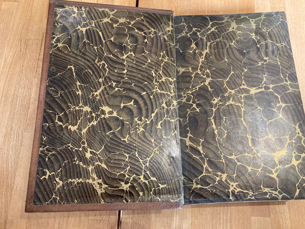 This nicely (but now rubbed and faded on the outside,) marbled book holds a record of wartime salvage off the Sussex coast.